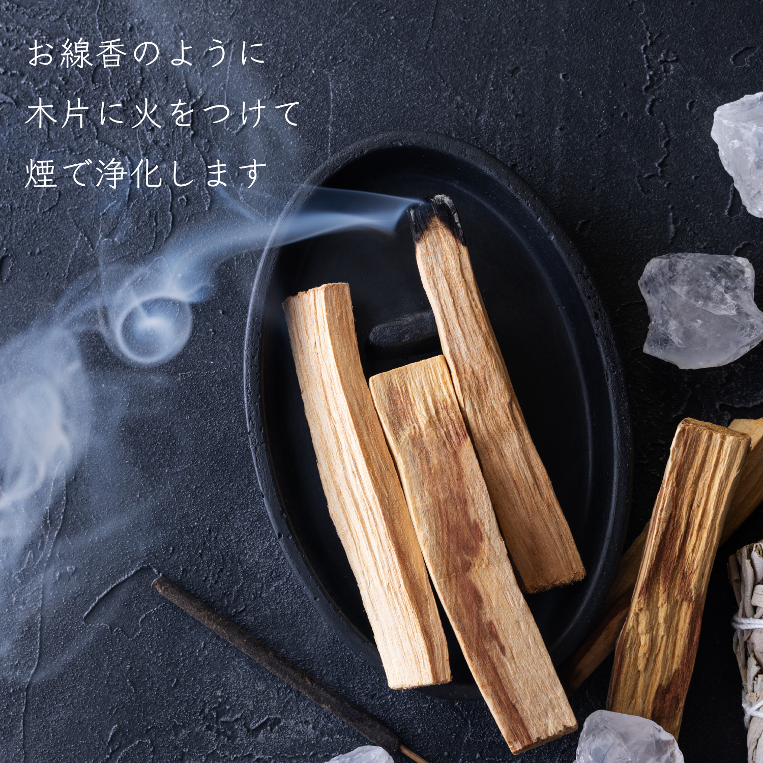 パロサントは、「聖なる樹」と呼ばれ、火をつけると立ち昇る甘い煙は、悪霊を追い払い幸福を呼び込むと言われています。